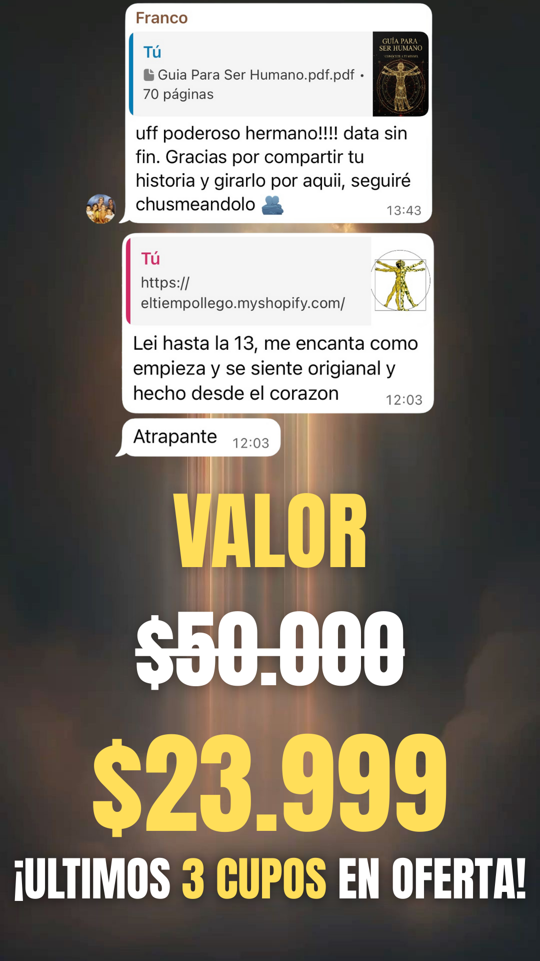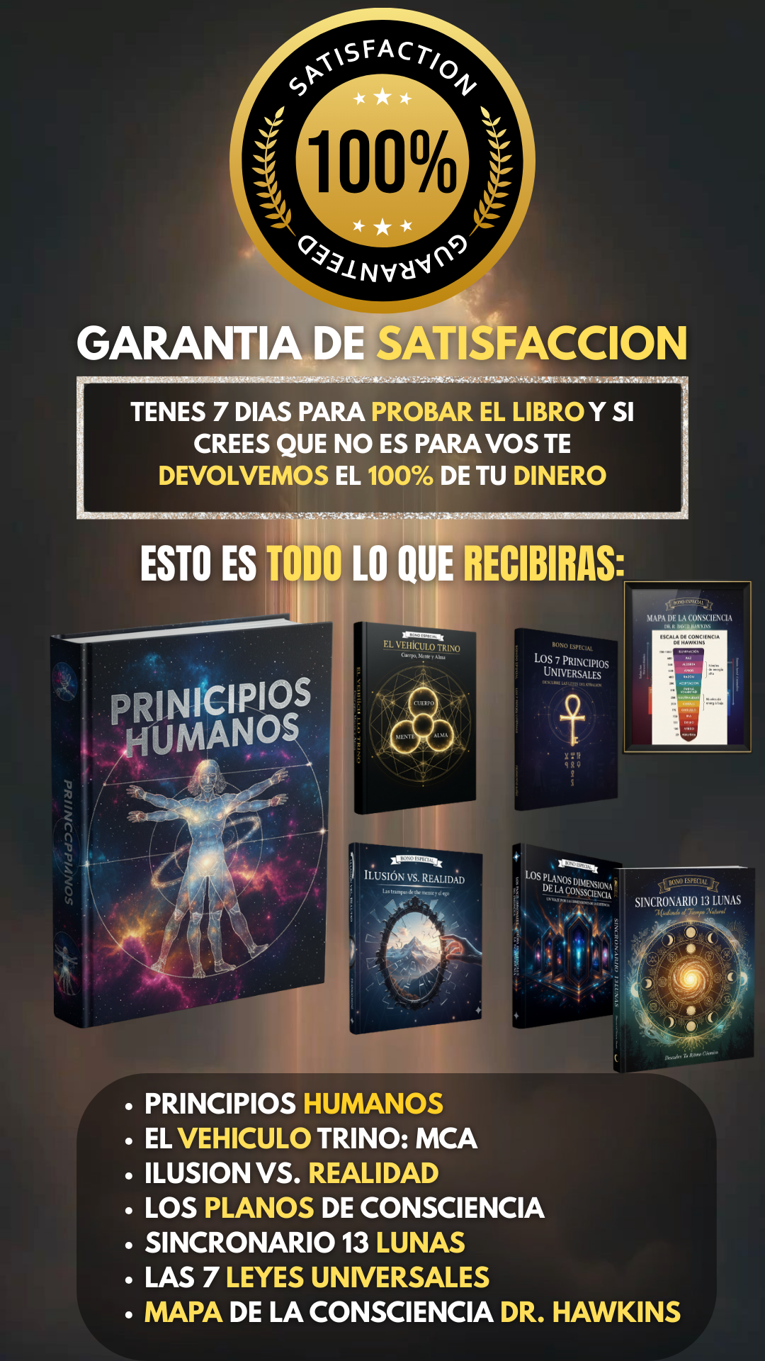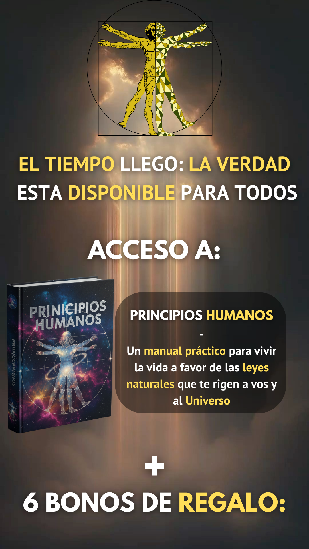 Comprende toda tu humanidad con la Guía "Principios Humanos", un manual de instrucciones para la vida con el que todos deberíamos nacer, creado según tu diseño original. A través de ejercicios prácticos y profundos, desbloquea el poder de tu humanidad para crear conscientemente la realidad que deseas y ejercer tu naturaleza. Accede a enseñanzas integradas de distintas tradiciones espirituales y filosóficas que revelan tu lugar en el cosmos y el propósito de tu existencia. Este es tu camino hacia la transformación integral y el despertar de tu verdadero potencial humano. Las verdades están disponibles para todos. El Tiempo Llegó.